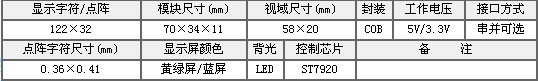 名稱:OCMJ12232C-3 白光黃屏3.3V